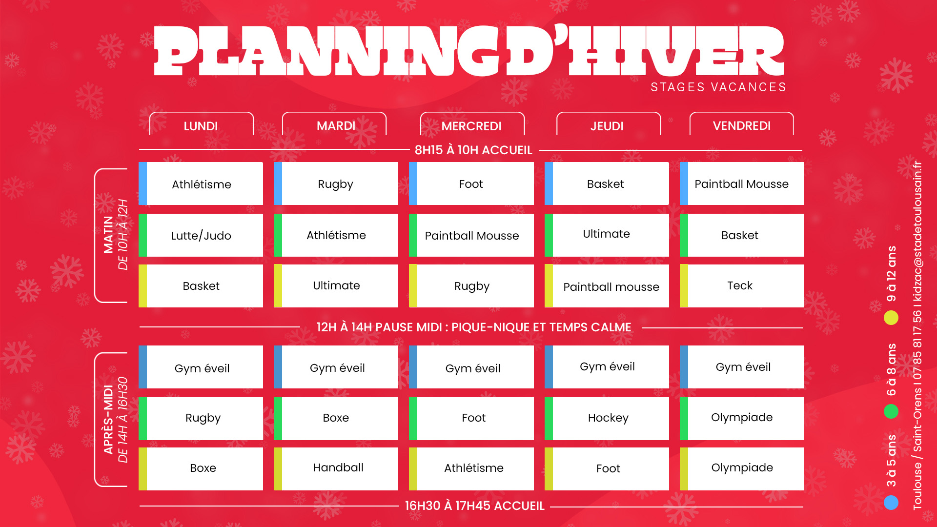 Découvrez nos stages multisports de la KidZ'Ac, avec des journées mêlant activités ludiques et sport encadrés par des professionnels et des éducateurs certifiés. Nous pouvons accueillir vos enfants à partir de 8h15 et vous pouvez venir les récupérer jusqu'à 17h45.