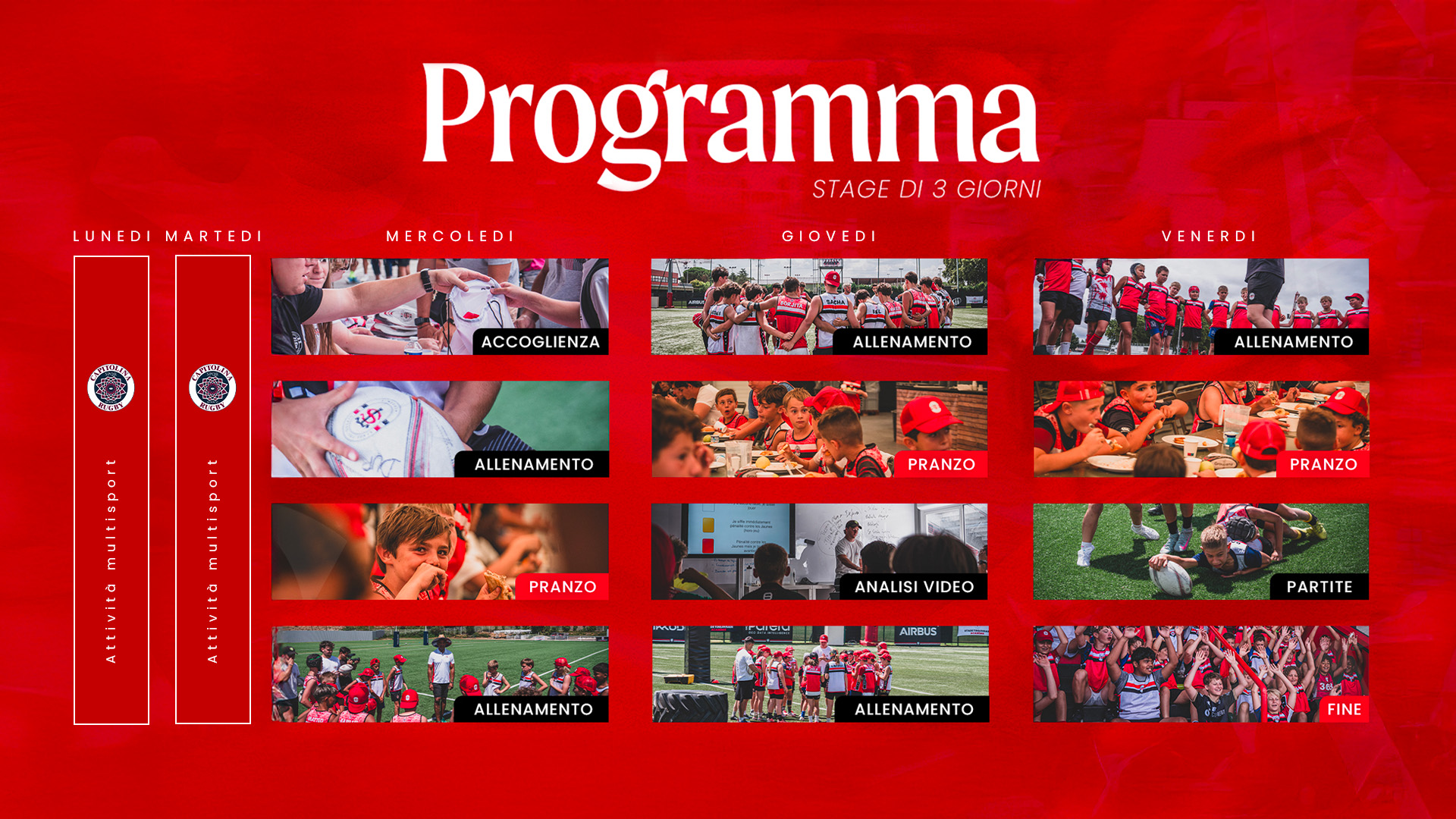 Unisciti a noi, saremo a Roma per 3 giorni di allenamento, ma potete scegliere anche la formula di 5 giorni. Sarai sotto la guida dei nostri allenatori qualificati e se sei fortunato potrai vincere un invito esclusivo per il nostro Corso "Performance" a Tolosa. Scegliendo la formula di 5 giorni in più allo stage dell'Académie, avrai l'opportunità di sperimentare attività multisport e complementari al rugby sotto la guida di educatori esperti del settore.